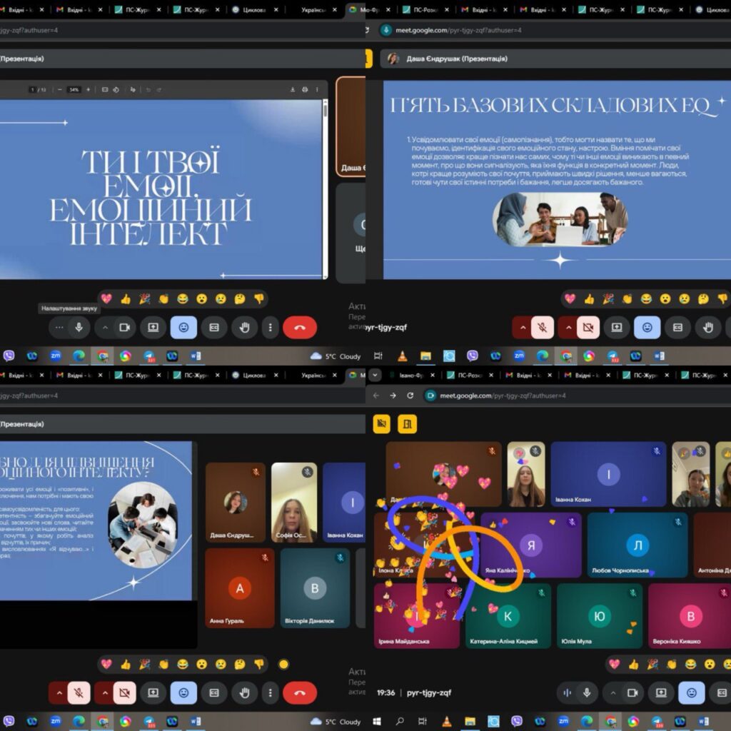 Сьогодні практиканти факультету психології Денис та Дарина організувала інтерактивний онлайн-тренінг, присвячений розумінню та розвитку емоційного інтелекту (EQ). Учасники дізналися про п’ять базових складових EQ, обговорили, як усвідомлення власних емоцій впливає на спілкування, навчання та роботу, а також спробували кілька практичних Читати далі