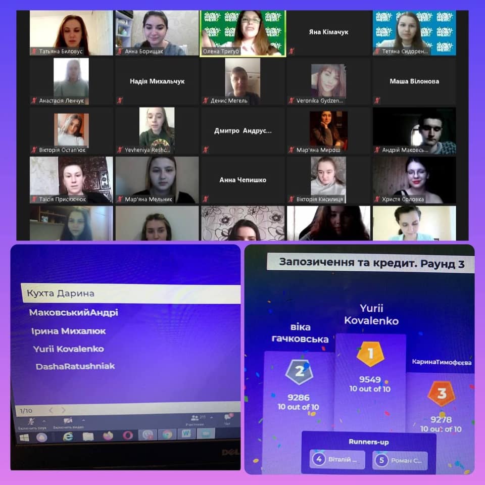 Щодня беремо активну участь у Kahoot-вечірках, де наші студенти показують чудові результати, займають високі місця, зокрема, Гачковська Вікторія, студентка групи ПО-32 здобула ІІ місце серед українського студентства за темою «Еволюція Монетарної політики за роки незалежності».