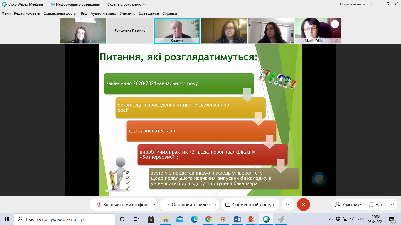 Завідувач педагогічного відділення Тетяна Вікторівна Полякова розповіла про особливості закінчення 2020-2021 навчального року, організацію і проведення літньої екзаменаційної сесії, державної підсумкової атестації.