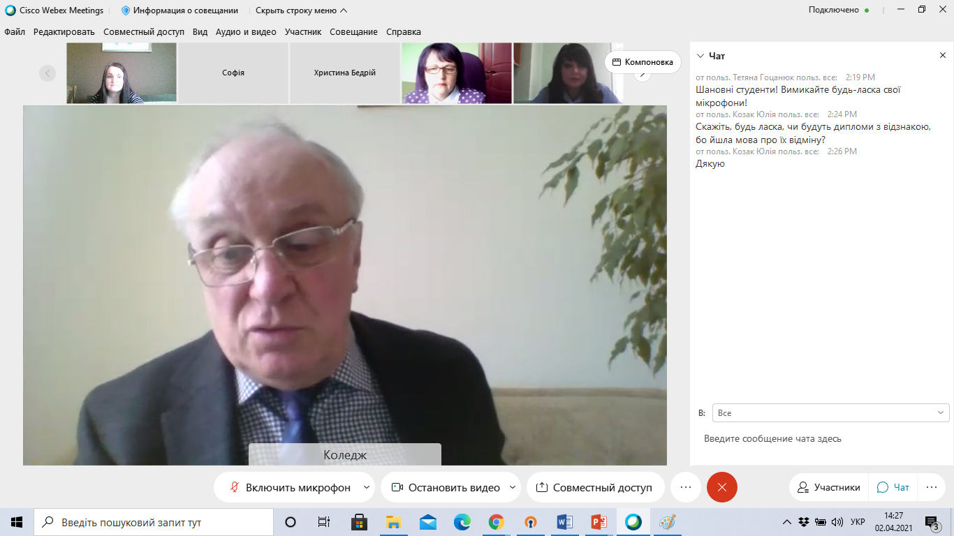 Зі вступним словом до студентів 4 курсу спеціальності «Початкова освіта» звернувся директор коледжу Юрій Михайлович Москаленко.