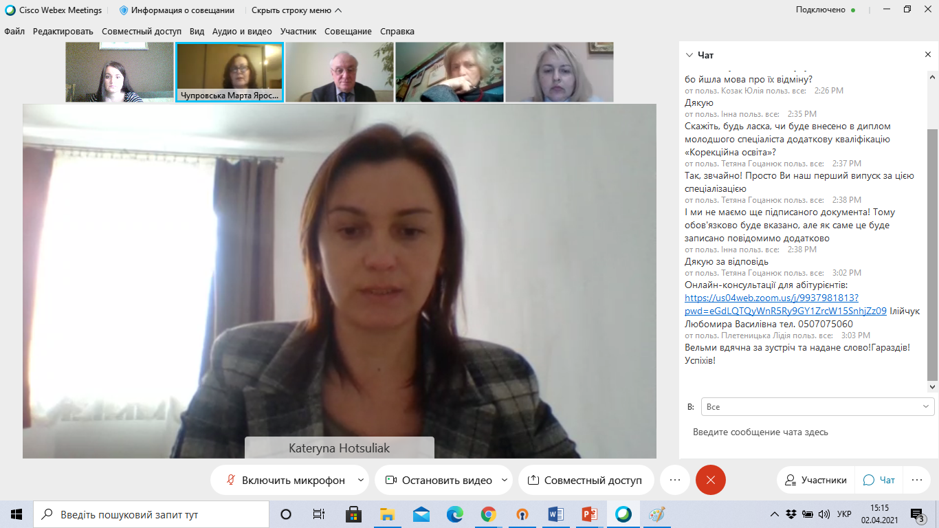 Також на зустрічі були присутні представники кафедр університету, які провели роз’яснювальну роботу щодо подальшого навчання випускників коледжу в університеті для здобуття ступеня бакалавра. (Оліяр М.П., Ілійчук Л.В., Гасюк М.Б., Лазарович О.М.).