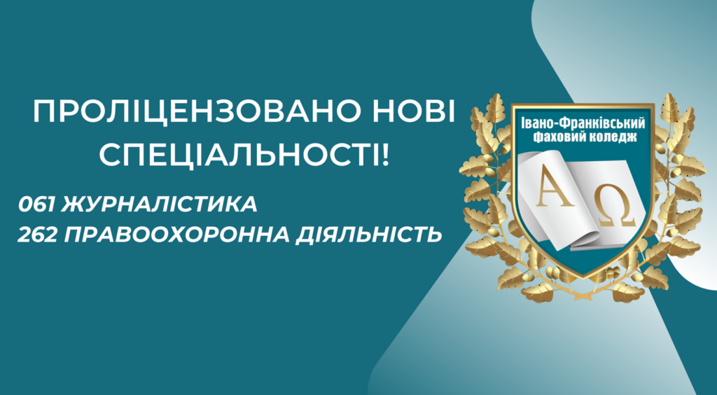 Шановні друзі! Раді сповістити вам, що відповідно до рішення ліцензійної комісії Міністерства освіти і науки України, наказ № 304-л від 10.05.2024 року, проліцензовано спеціальності 061 Журналістика (ліцензійний обсяг 25 осіб) та 262 Правоохоронна діяльність (ліцензійний обсяг 50 осіб). Не втратьте Читати далі