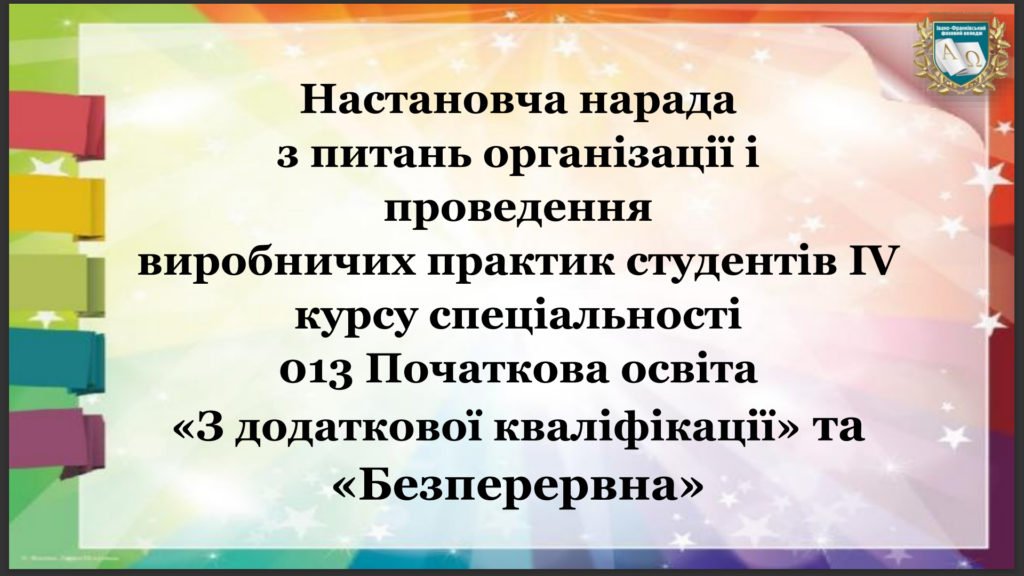 Настановча нарада з питань організації і проведення виробничих практик студентів четвертого курсу спеціальності 013 Початкова освіта «З додаткової кваліфікації» та «Безперервна»