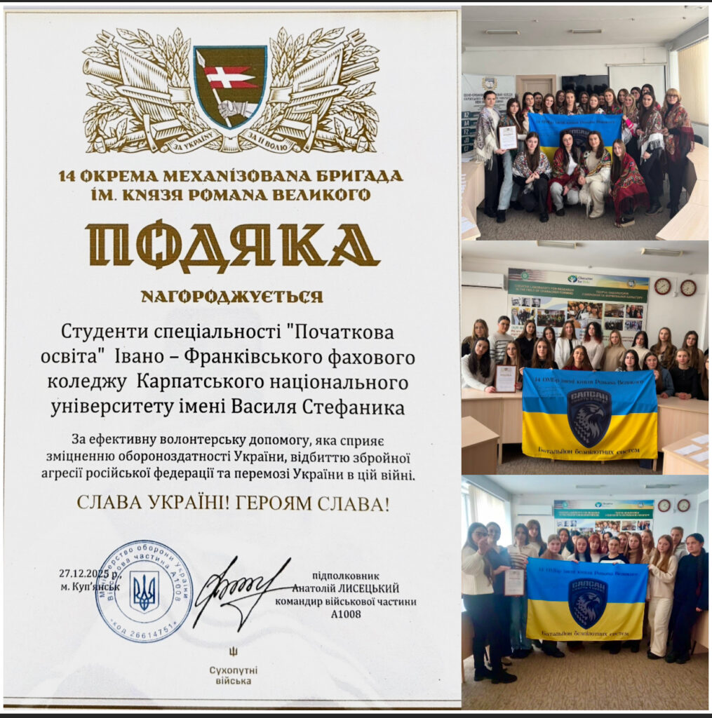 ЄДНІСТЬ ТИЛУ І ФРОНТУ: СТУДЕНТИ КОЛЕДЖУ СПЕЦІАЛЬНОСТІ «ПОЧАТКОВА ОСВІТА» ВІДЗНАЧЕНІ ПОДЯКОЮ 14 ОМБР