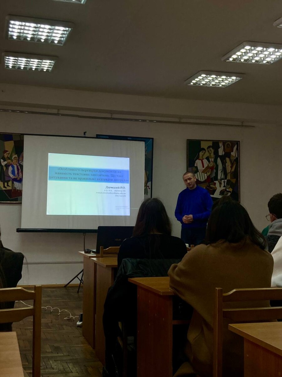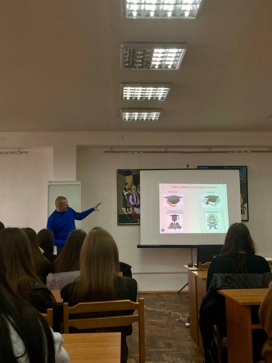 З метою ознайомлення здобувачів освіти з актуальними принципами дотримання академічної доброчесності та запобігання проявам плагіату в студентському середовищі, студенти другого курсу спеціальності «Початкова освіта» в межах вивчення навчальної дисципліни «Вступ до спеціальності» (викладач – Гой Наталія Василівна) взяли участь у лекційному занятті на тему: «Принципи дотримання академічної доброчесності та особливості написання наукових робіт». Захід провів директор Наукової бібліотеки КНУВС Роман Дзумедзей.